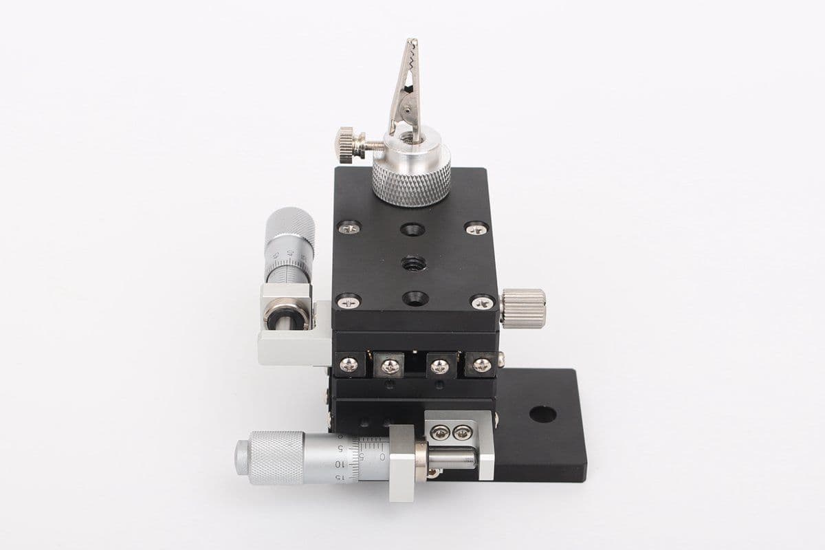 Specimen holder with crocodile clip and fine control of X & Y Axes. Can be mounted onto an tripod mount with a 1/4 bolt..
