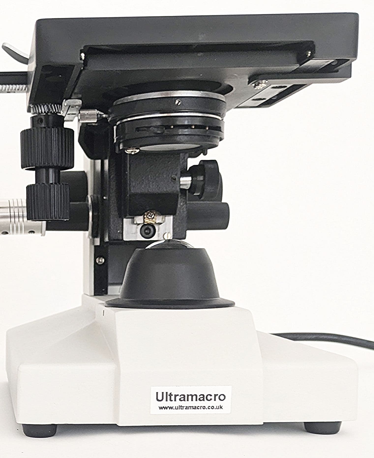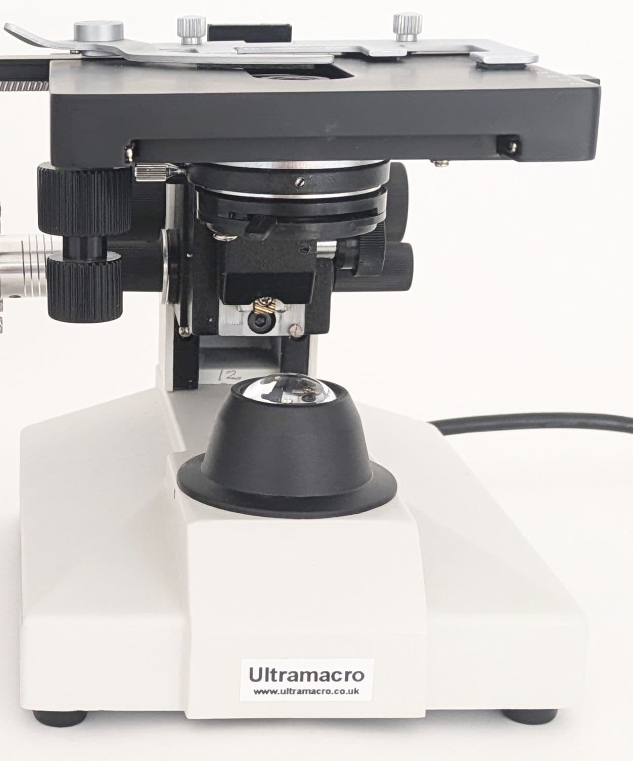 Probably one of the most useful accessories in our catalogue. Many consider it essential for finely (and extremely conveniently) manipulating and focussing specimens at high magnifications. A unique microscope stage with bottom LED illumination which is focussed through a proper sub-stage condenser. Includes drop-sided coaxial XY stage controls with separate coarse and fine focus knobs on two sides, ideal for giving you that careful control of focus and XY positioning. Good for any subject and especially useful for thin transparent and slide mounted specimens.