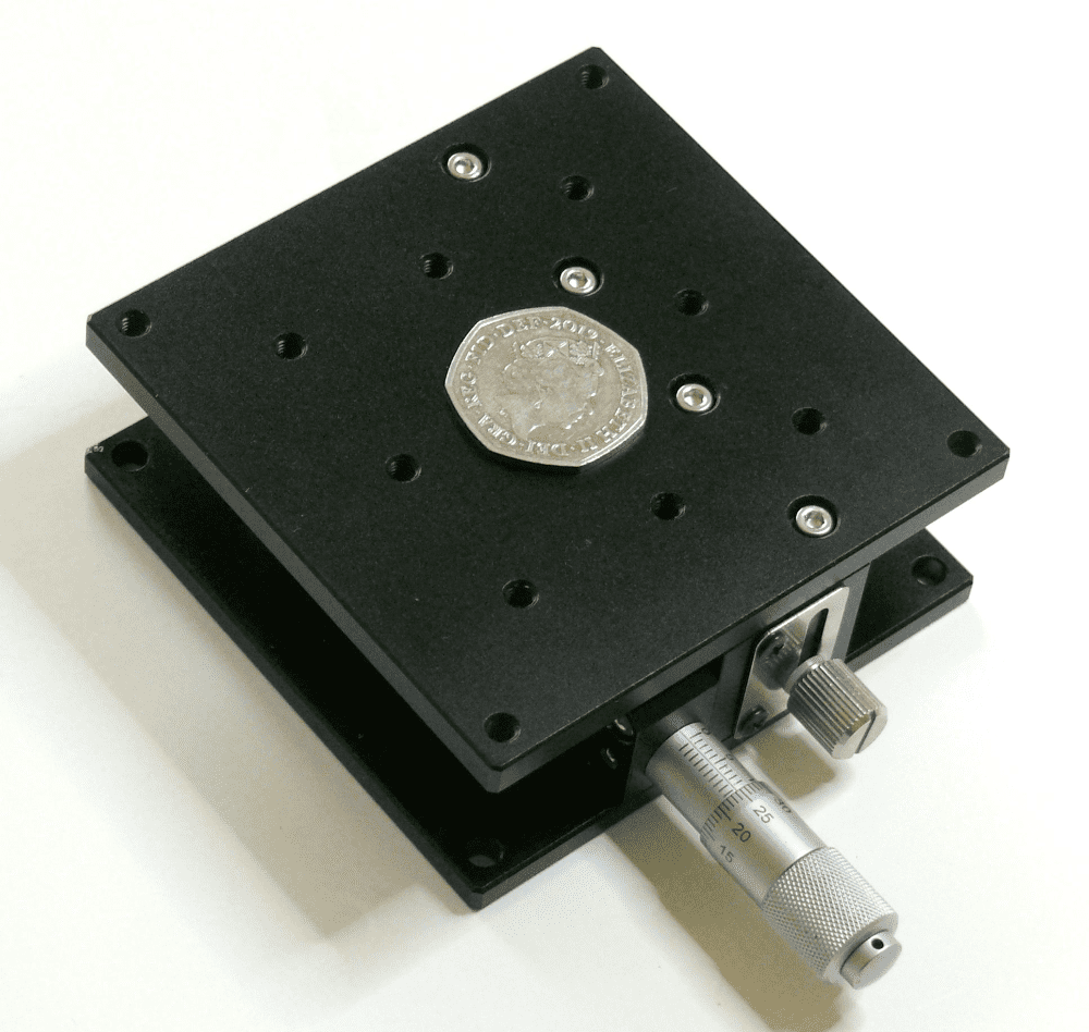 The stage can be mounted onto other XY stages to create a 3 axis movement system.