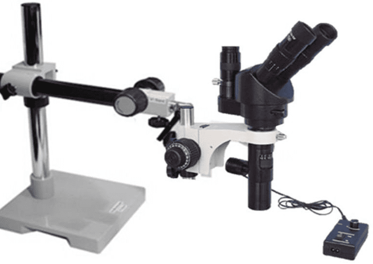 11X-75X (0.75Xobj), 0.5X Coupler, Trinocular, Coaxial LED, V1 boom arm stand (or AV-40) Stand