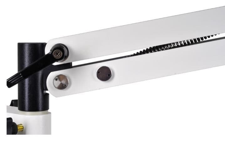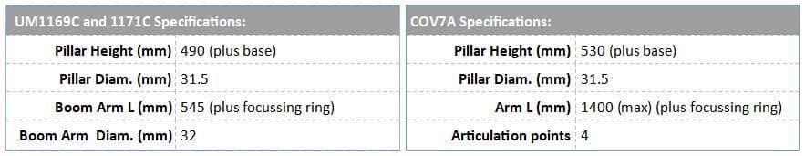 The COV7B articulated arm stand is the best stand of its type available with full height adjustment including a beautifully balanced, lockable spring-loaded end section and an exceptionally long reach. These stands can be used with any lens, monozoom microscope, stereo microscope or camera. The optional 1/4 inch tripod mount focussing mount (CO7013B) is used to mount cameras.